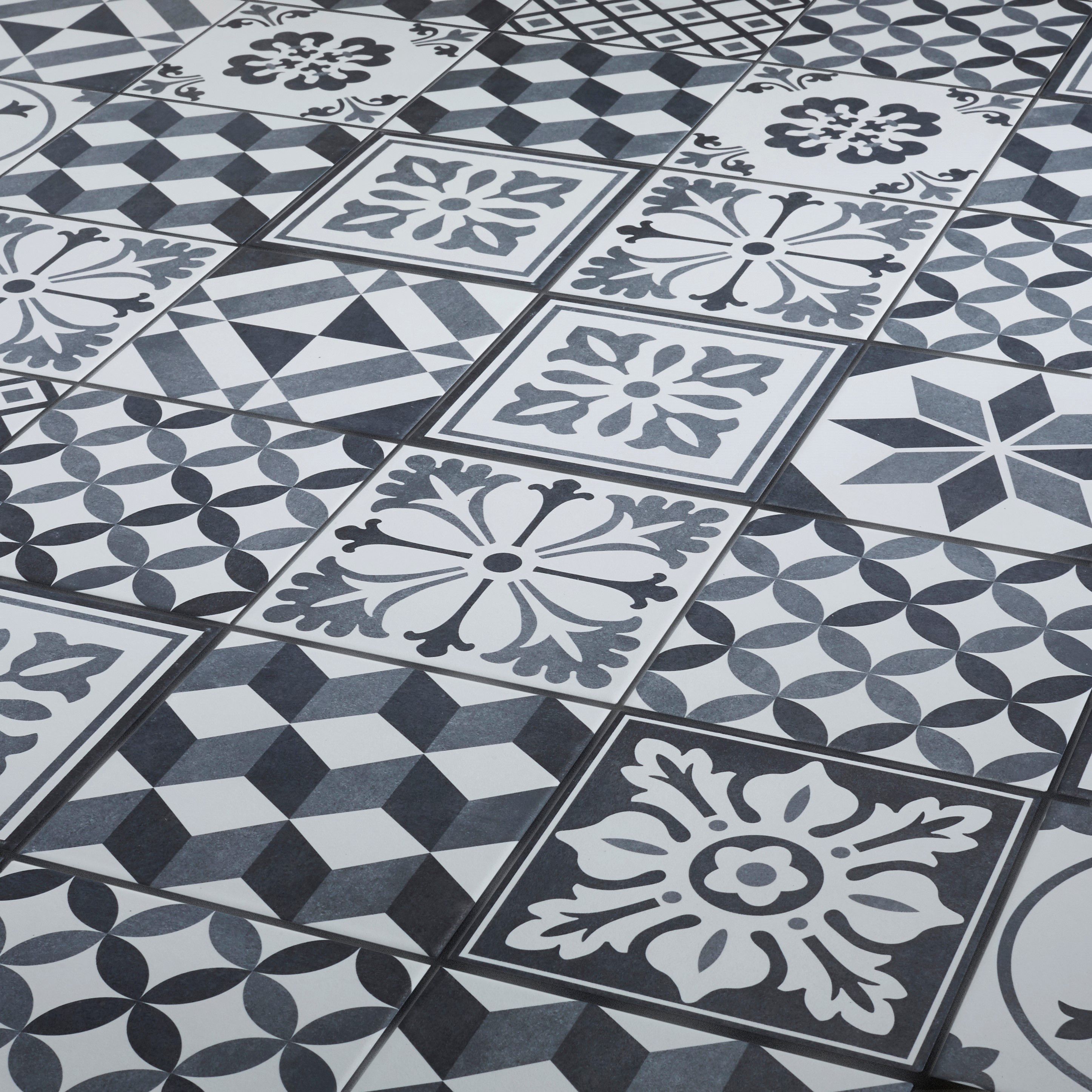 Grey patterned floor tiles b&q.